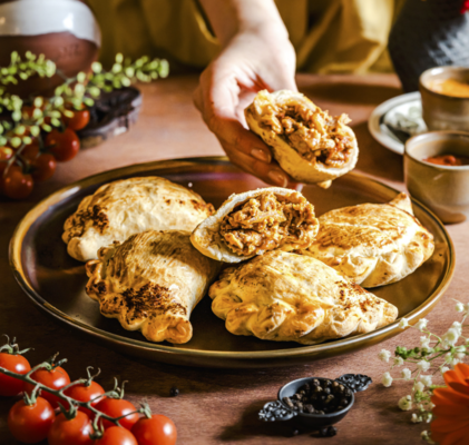 Pieczone ziemniaki, regionalny twaróg, cebula